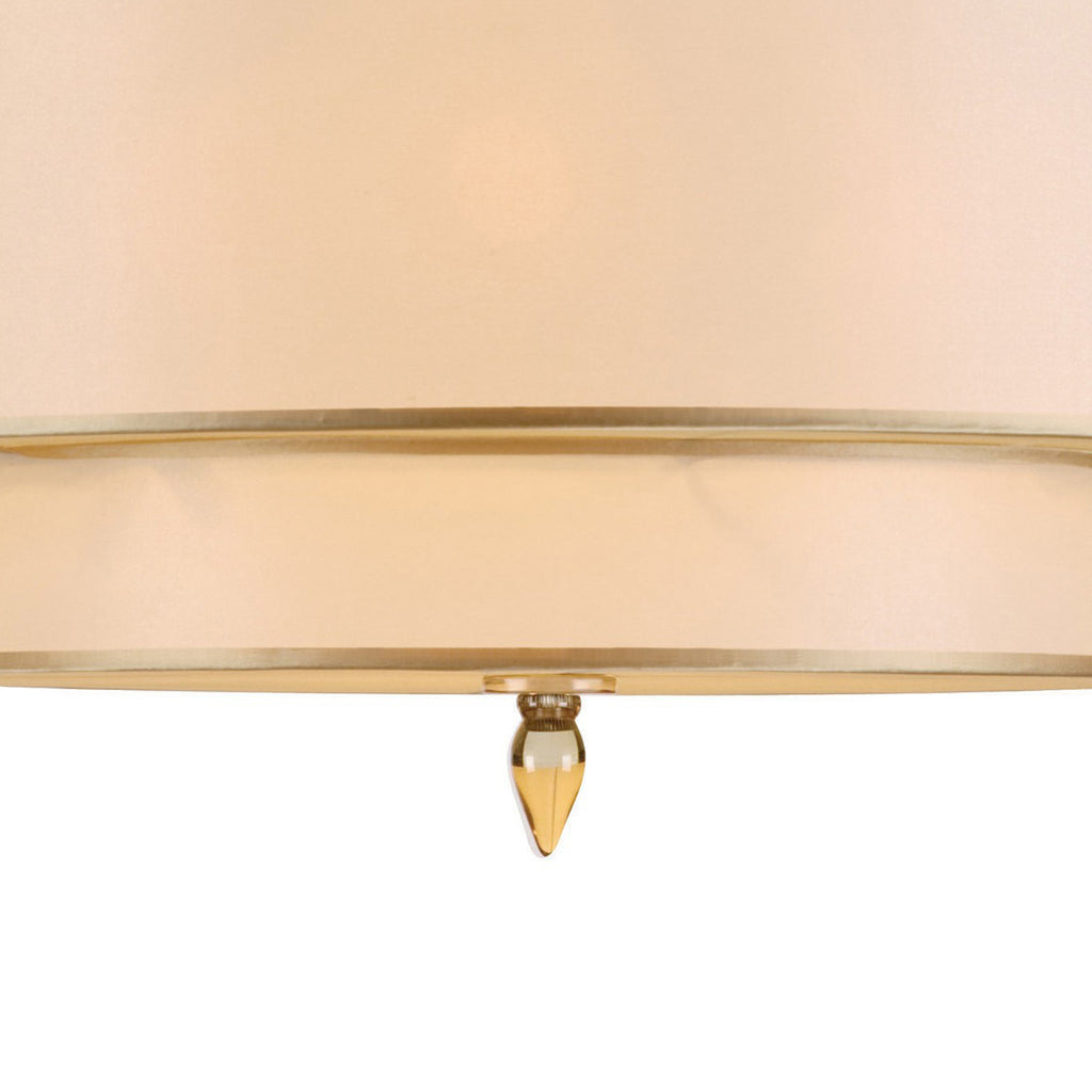 - Features fabric cream shade with amber acrylic beads. Convertible; can be installed as a chandelier or ceiling mount.