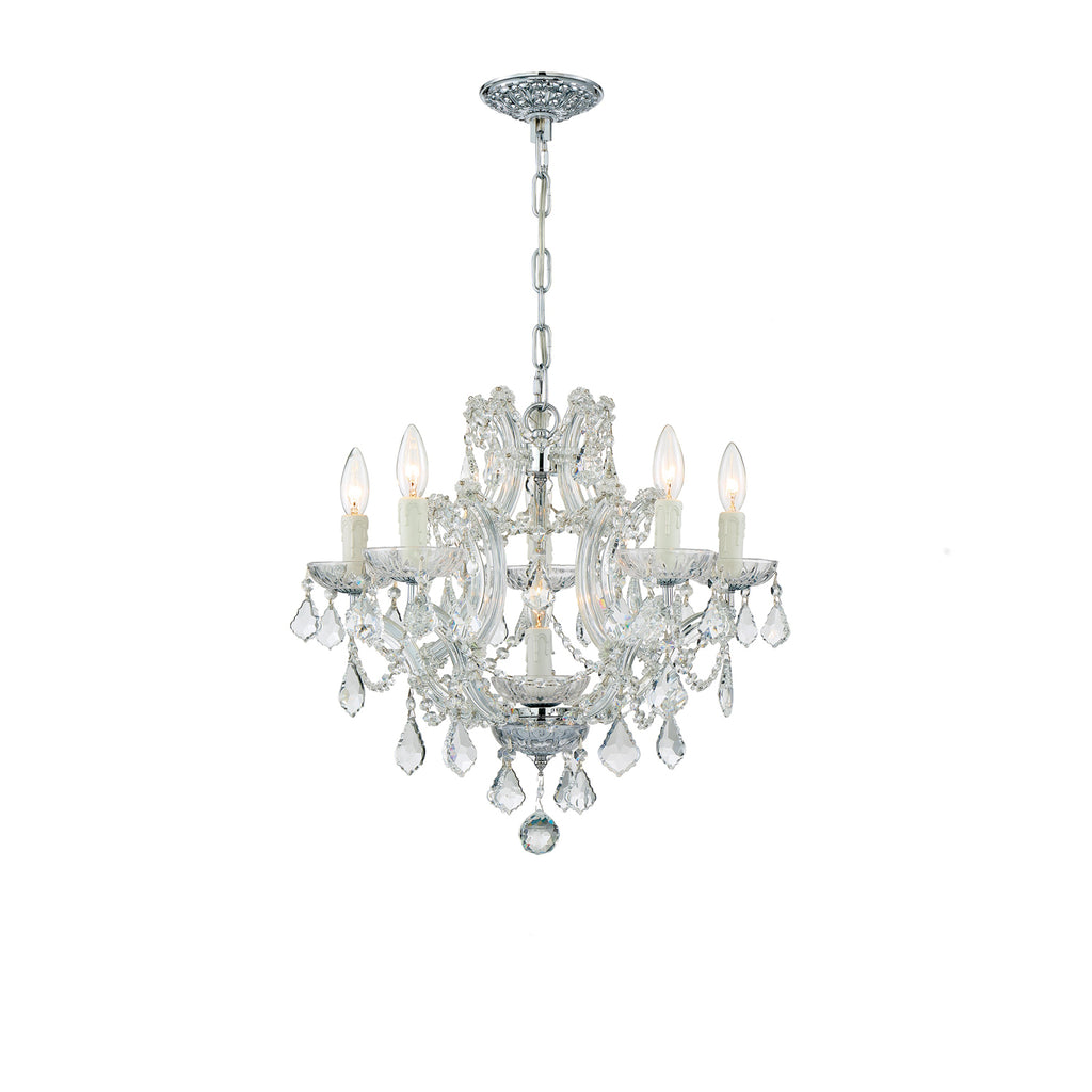 - Draped in an abundance of crystal, the Maria Theresa collection is the epitome of high style. The fixture is stunning with glass arm frame decked with strands of crystals. The fixture showcases opulence and decadence and is the perfect traditional accent to any space. Whether in a living room, or even closet or hallway, this fixture bring a luxurious addition to any decor.